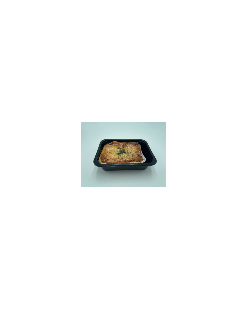 Ingrédients : Composition : Mozzarella, tomate, lait, farine, margarine végétale, oignons, pâtes (lasagnes : semoule de blé dur, oeufs), basilic, pesto [huile de tournesol, basilic, fromage (lait, sel, ferment lactique, présure), sel, jus de citron concentré, ail], gruyère, sel et poivre.