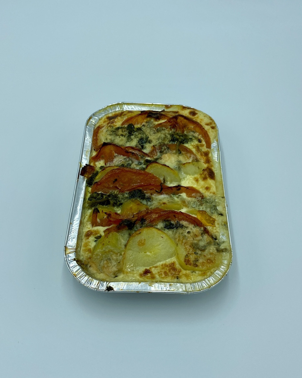composé de pommes de terre , épinard, tomate, fromage(roquefort)